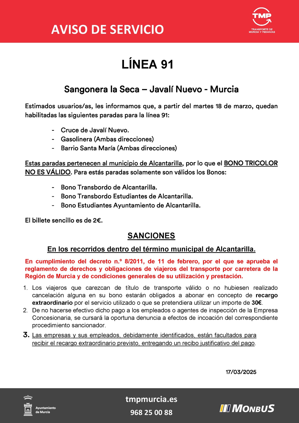 Tarifas y bonos